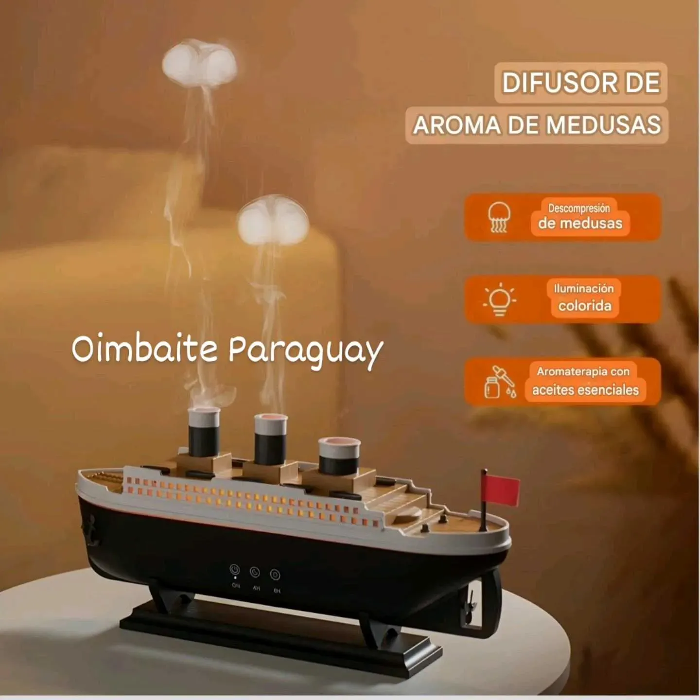 Humidificador ultrasónico + difusor de aromas + luz ambiental con control remoto.