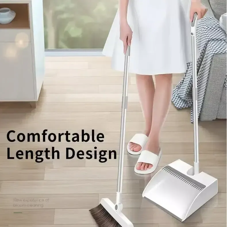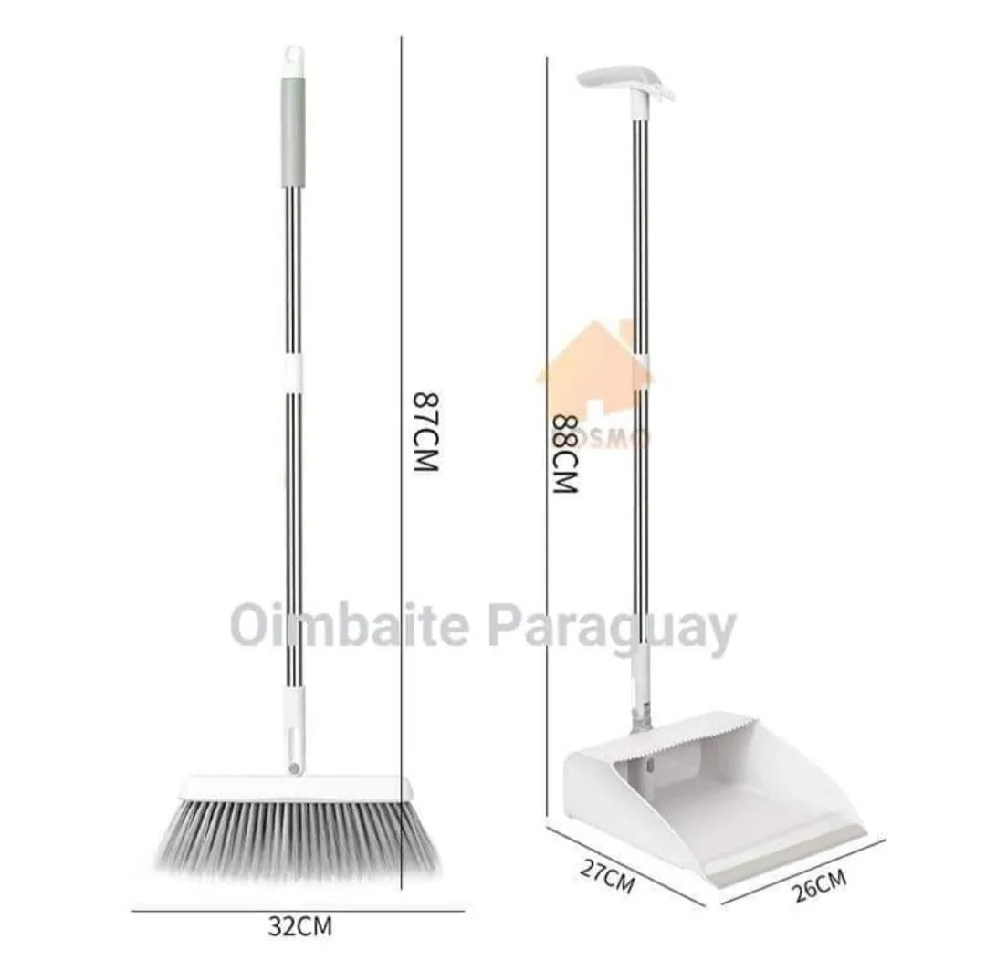 Kit de limpieza 2 en 1. Escoba con cabeza giratoria para dar facilidad y caber en cualquier espacio de manera que quede todo limpio. La palita posee dientes para limpiar los pelos, pelusas, cabellos y restos de basura que pueda quedar a la escoba, se unen por medio de un imán.