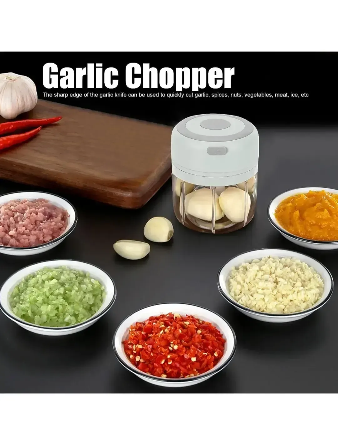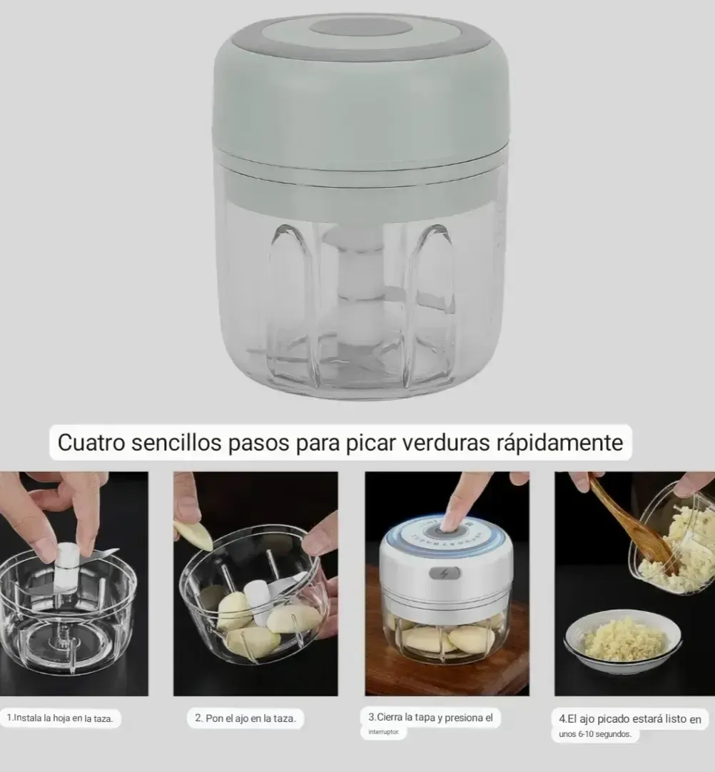 Mini procesador recargable. Picador de ajo, verduras