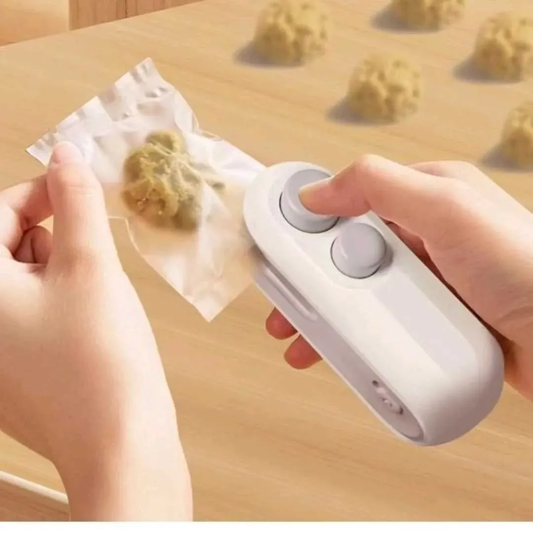 Mini sellador de bolsas para uso doméstico.