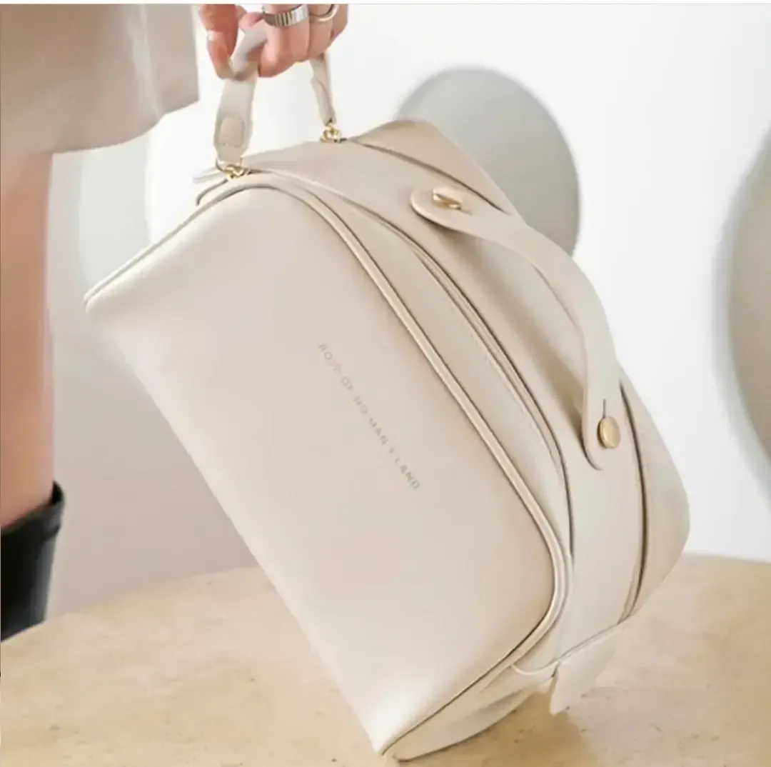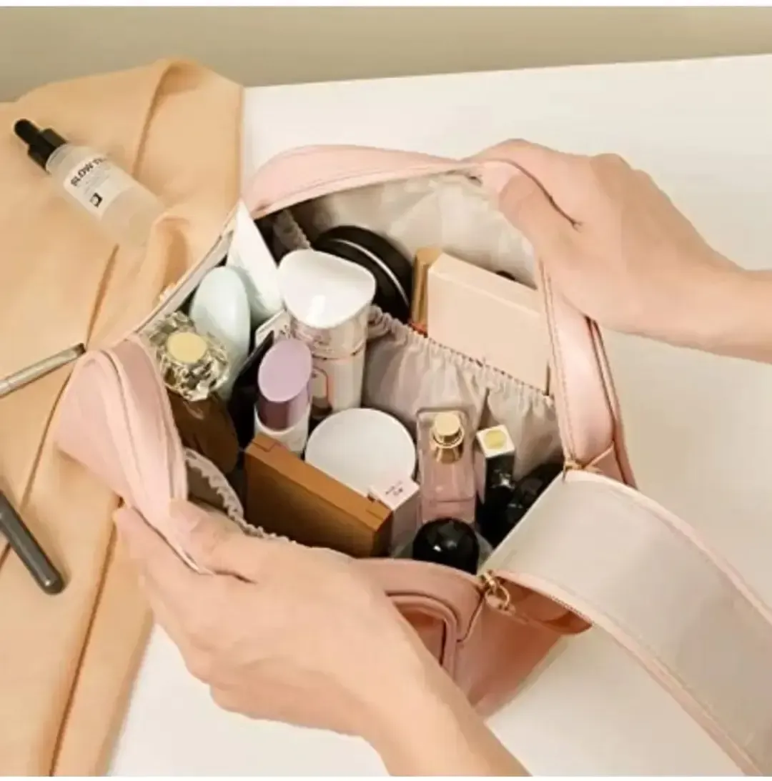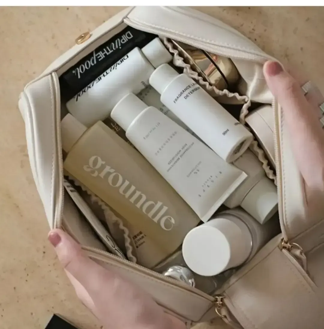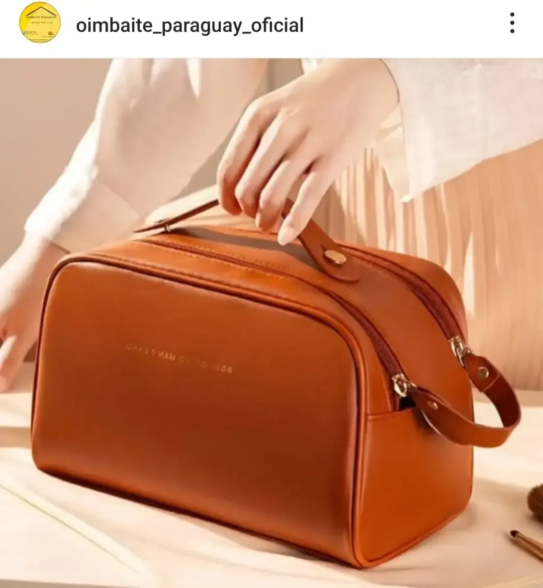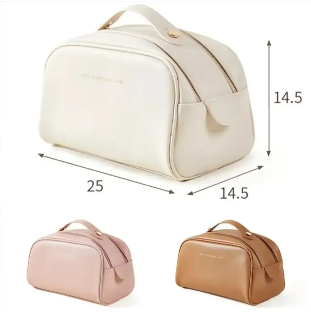 Organizador ecocuero para maquillajes, cremas y otros artículos personales.