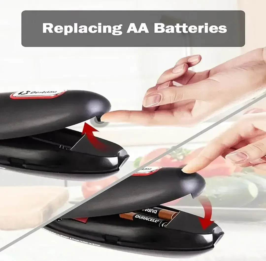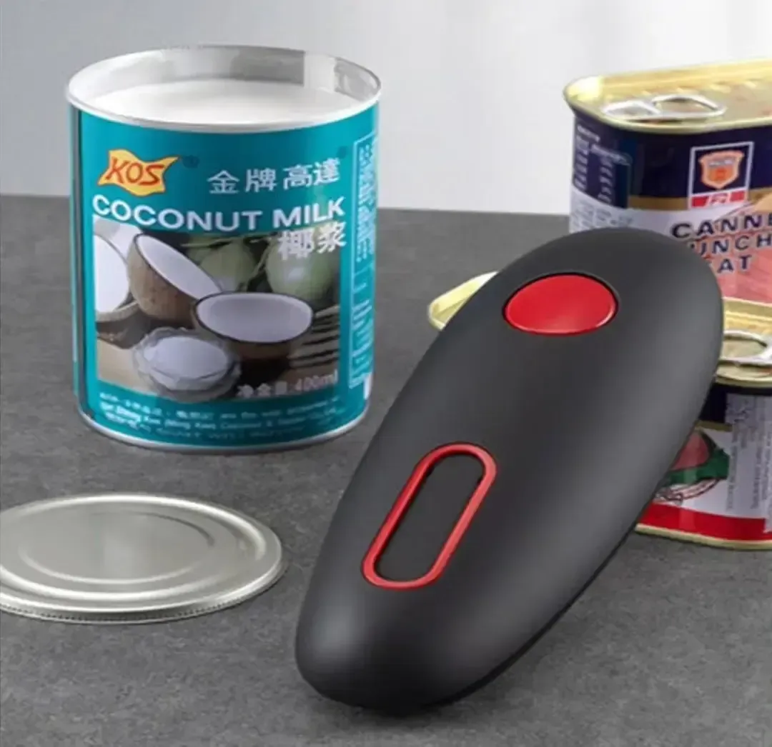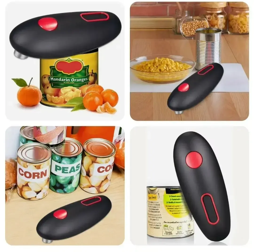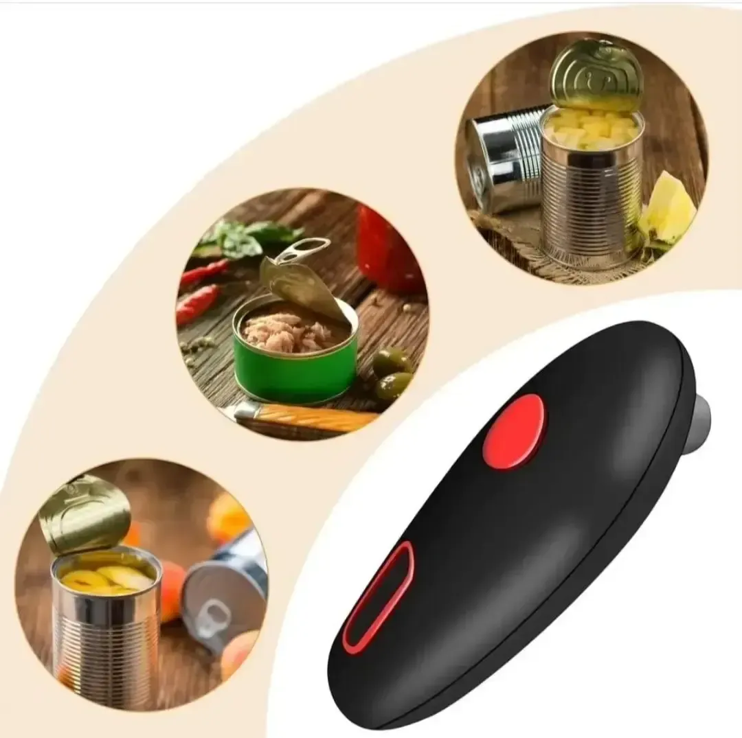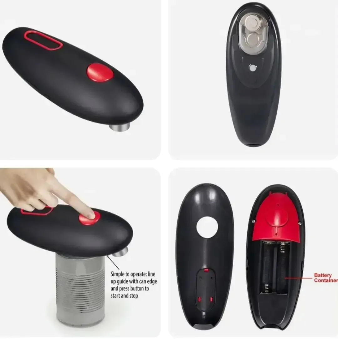 Sin esfuerzo, cero estrés y tus latas abiertas perfectamente. Abrelatas automatico, de borde liso, acero inoxidable y manos libres.