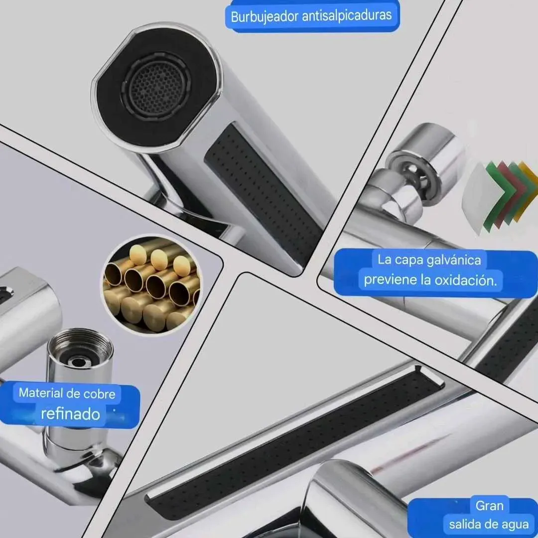 4 modos de salida de agua, gire la pieza de la boquilla 90 grados para cambiar entre los 4 métodos de salida de agua.