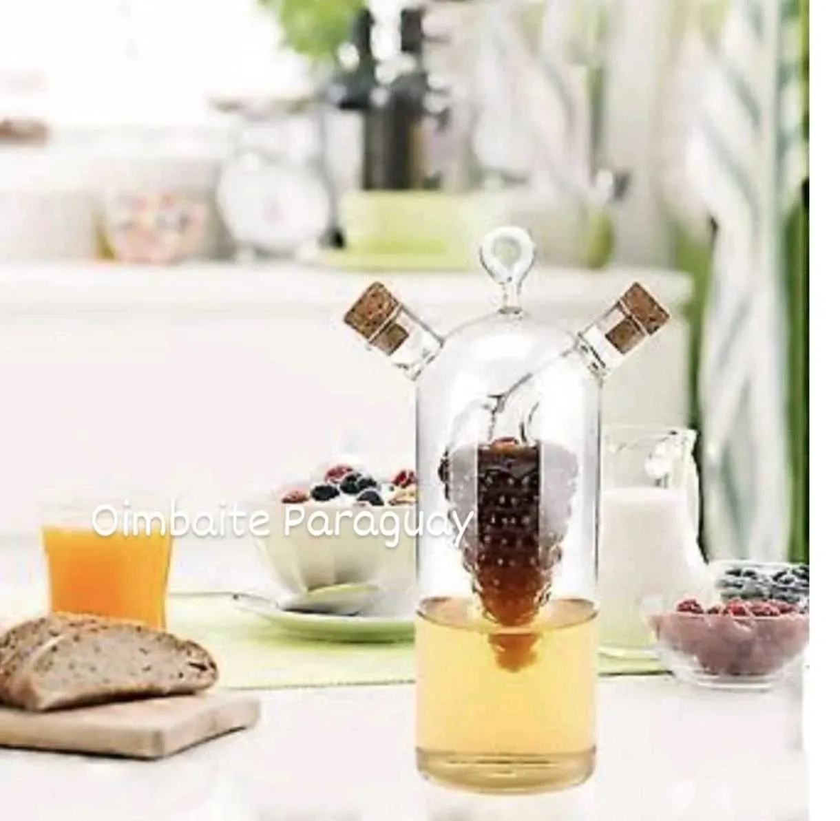 Botella dispensadora de aceite y vinagre 2 en 1 en una presentación sofisticada y original con tapa corcho.