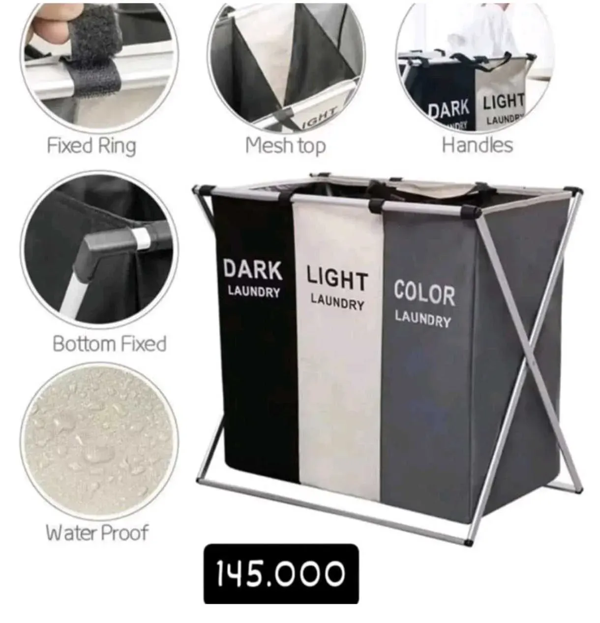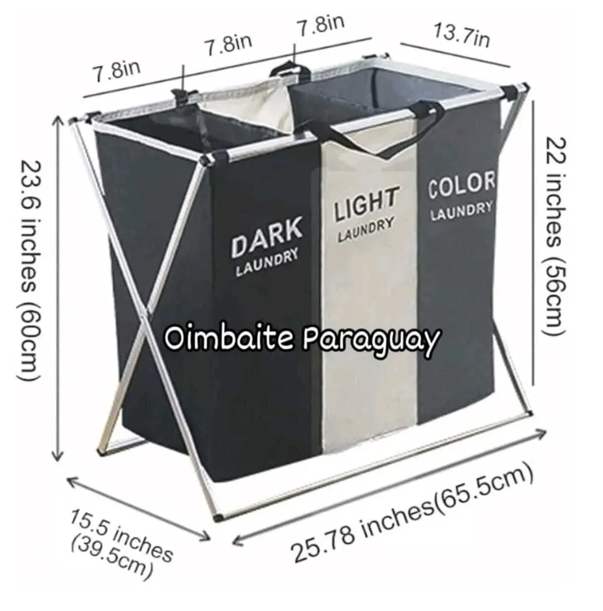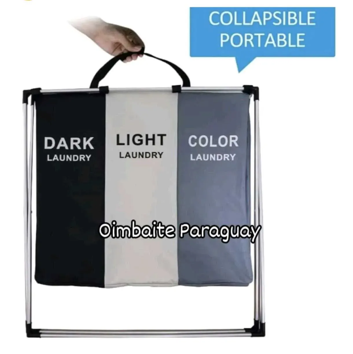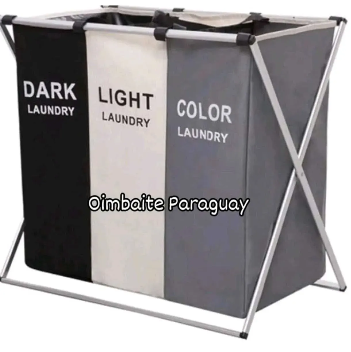 Cesta multiuso con 3 compartimientos, plegable para ropas, juguetes, peluches, otros.