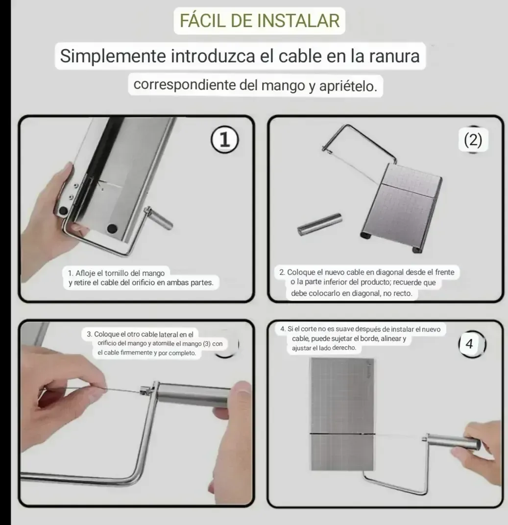 Posee un fino alambre de acero inoxidable para cortes precisos.