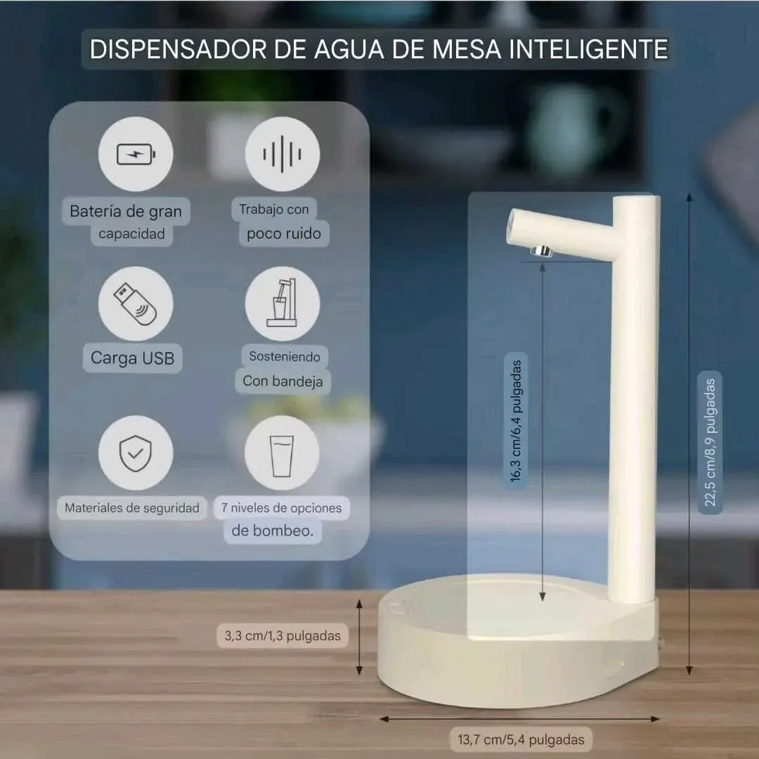 Dispenser sofisticado para agua, recargable, puede ir directamente sobre el bidón o sobre mesada.