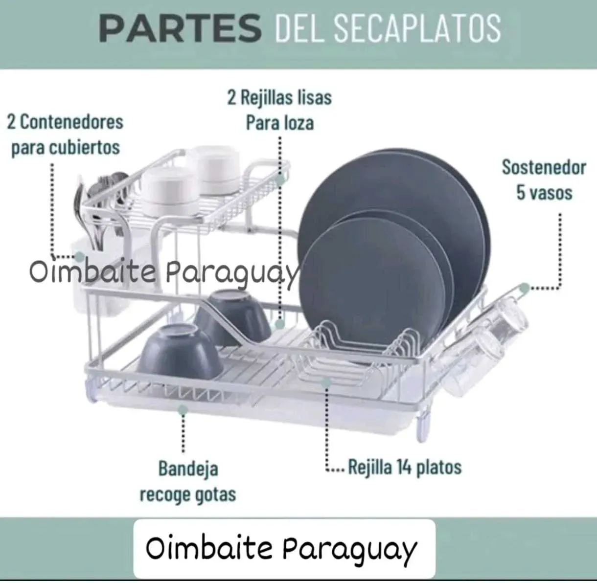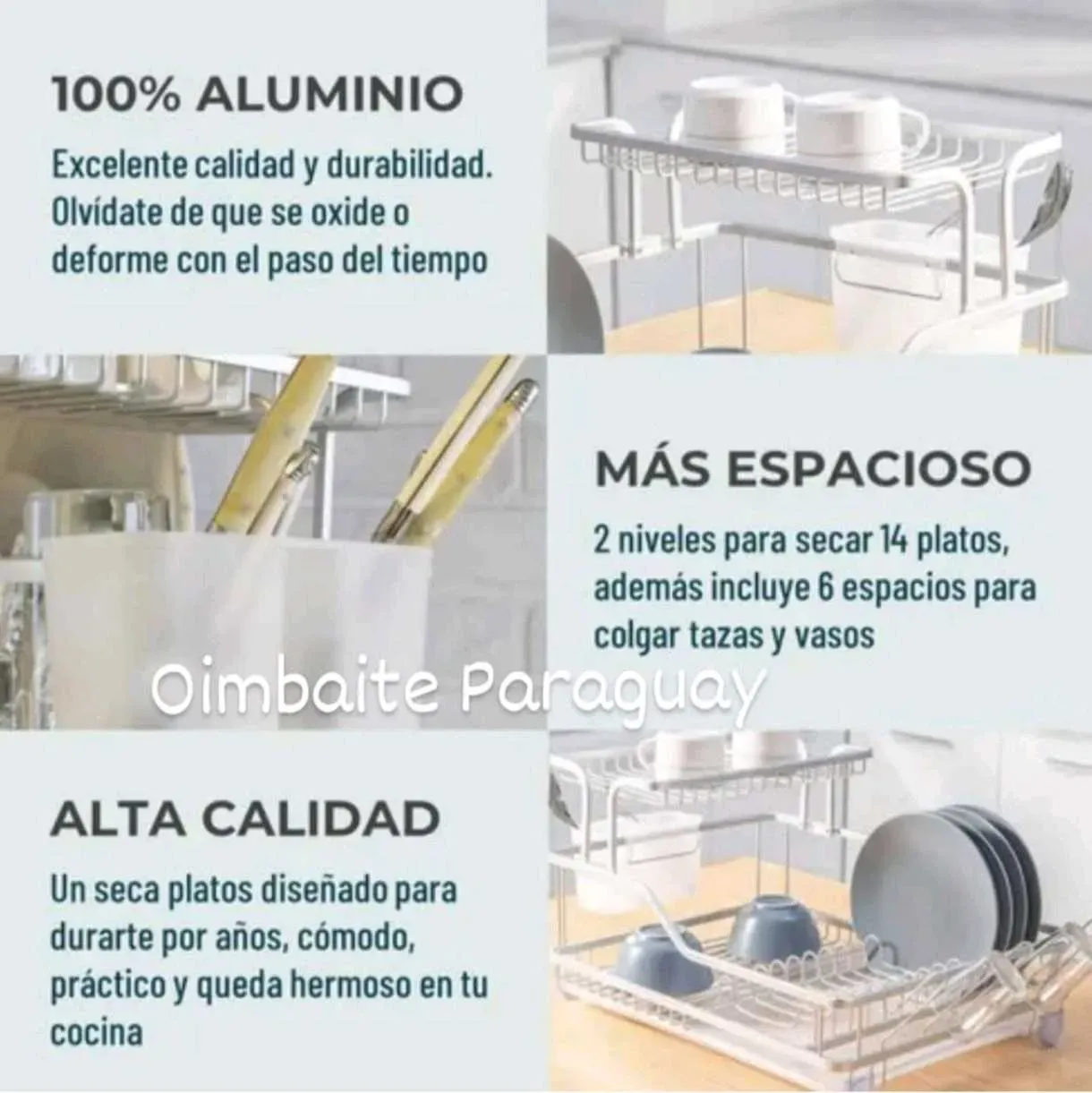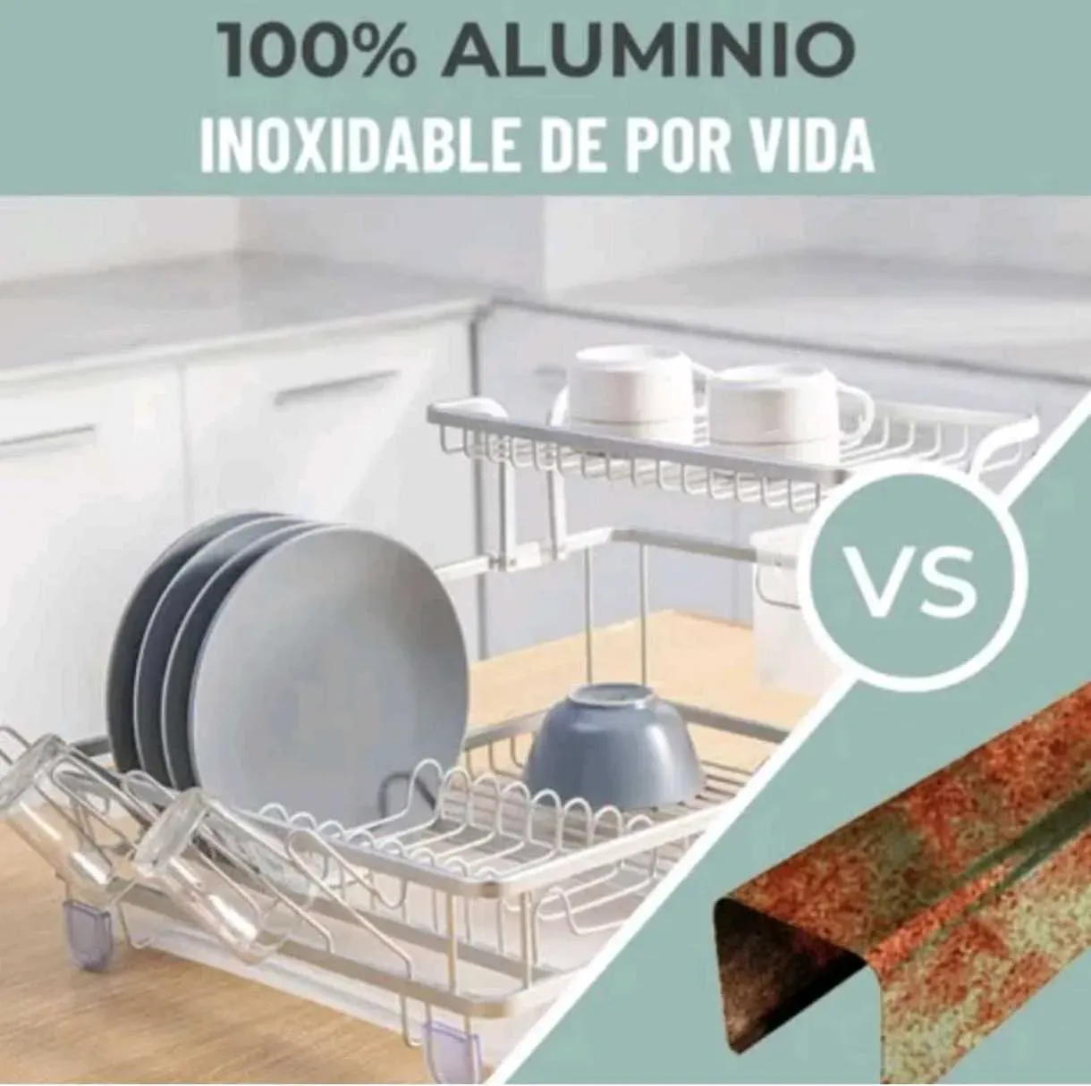 Escurridor de cubiertos de 2 niveles en aluminio, inoxidable.