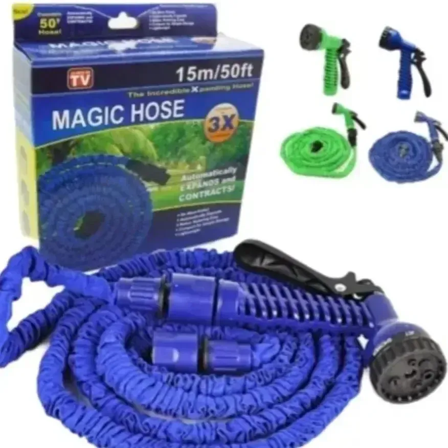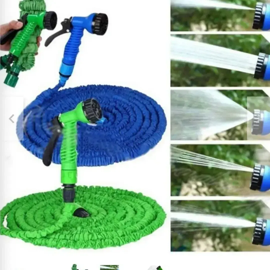 Manguera expandible de 15 y 30 metros con varios modos de salida de agua.