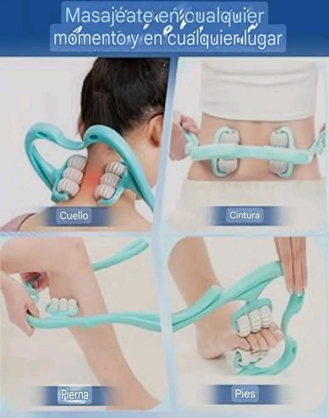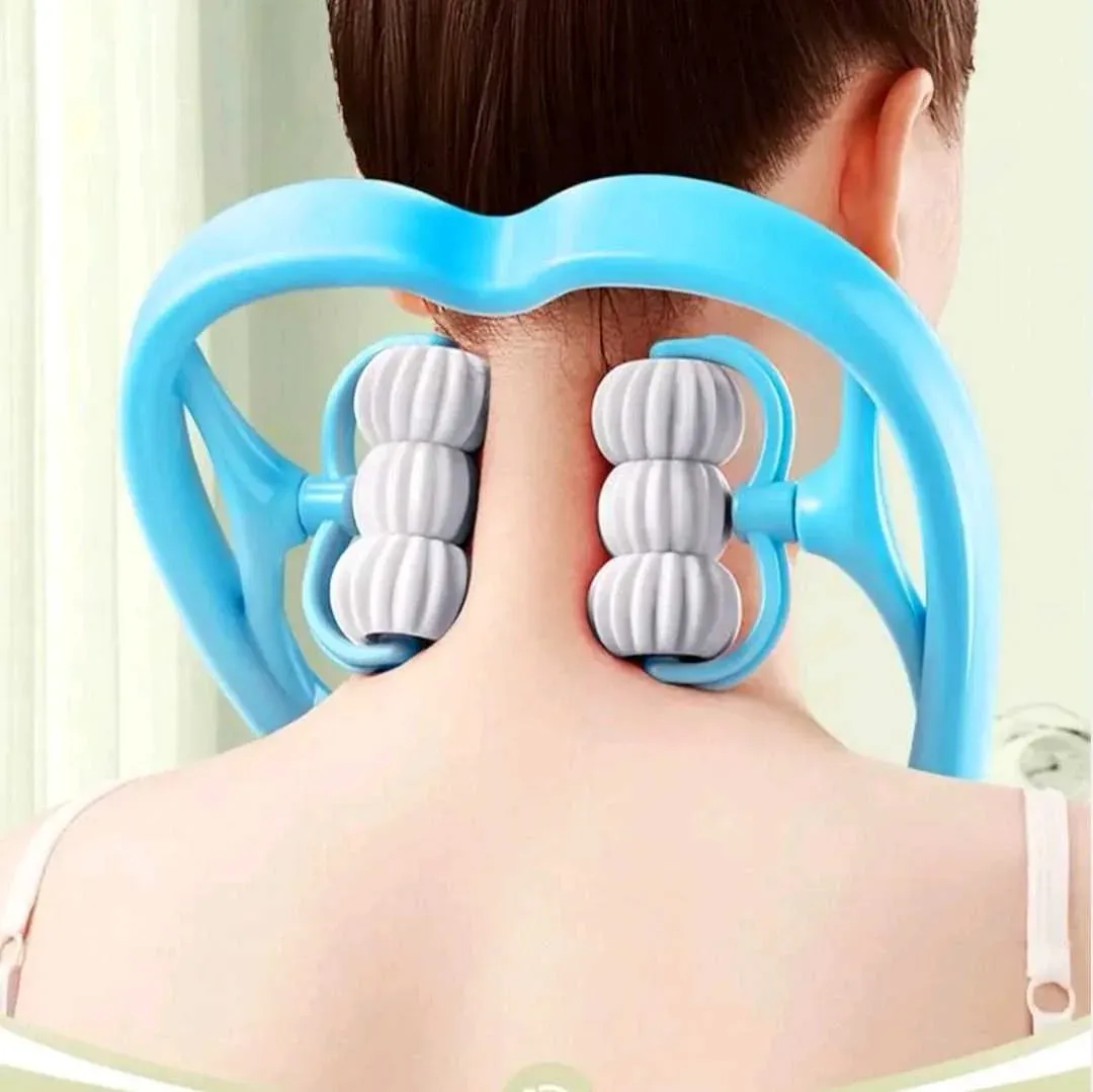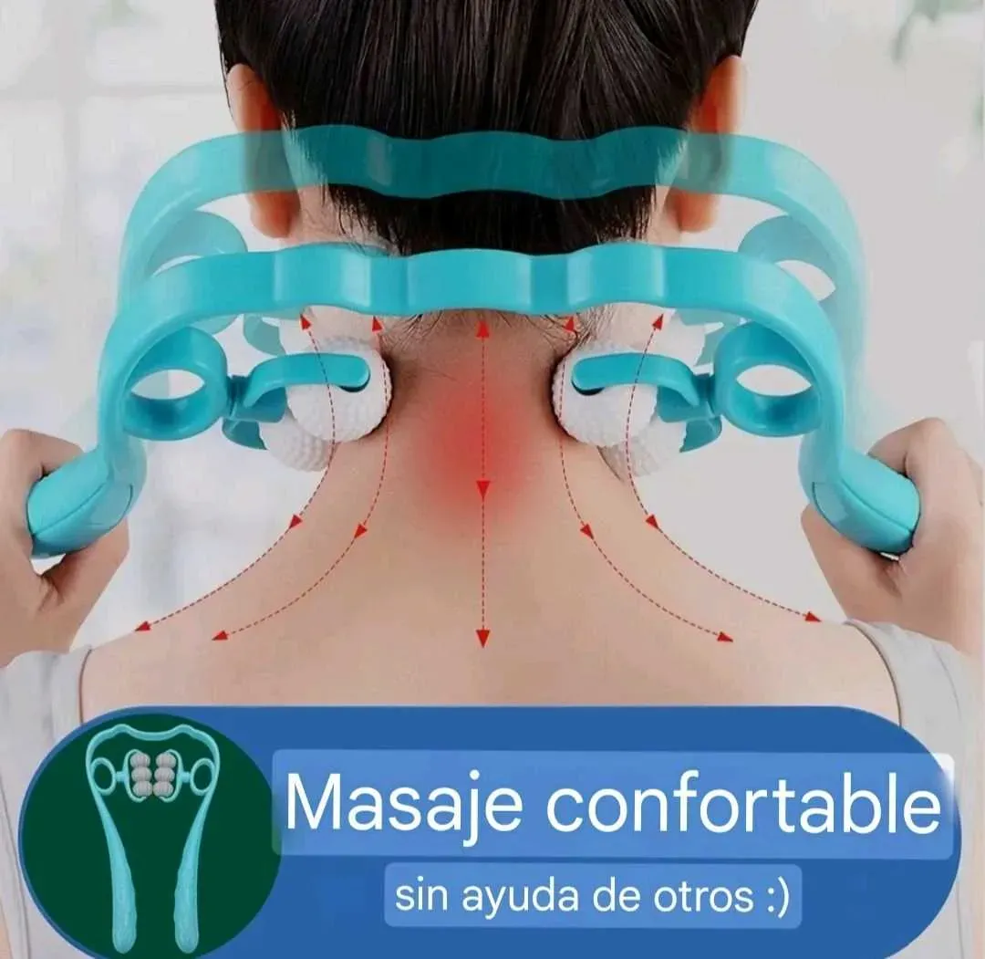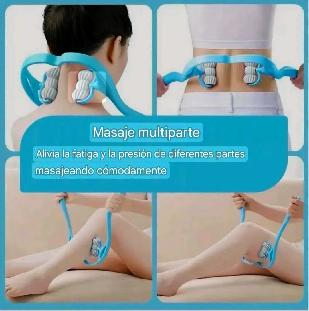 Masajeador manual con rodillos, para cuello, brazos y piernas.