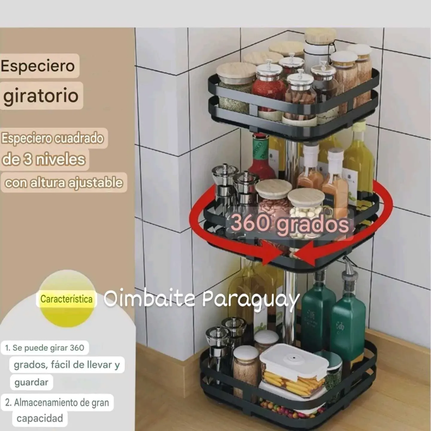 Organizador giratorio cuadrado 3 niveles