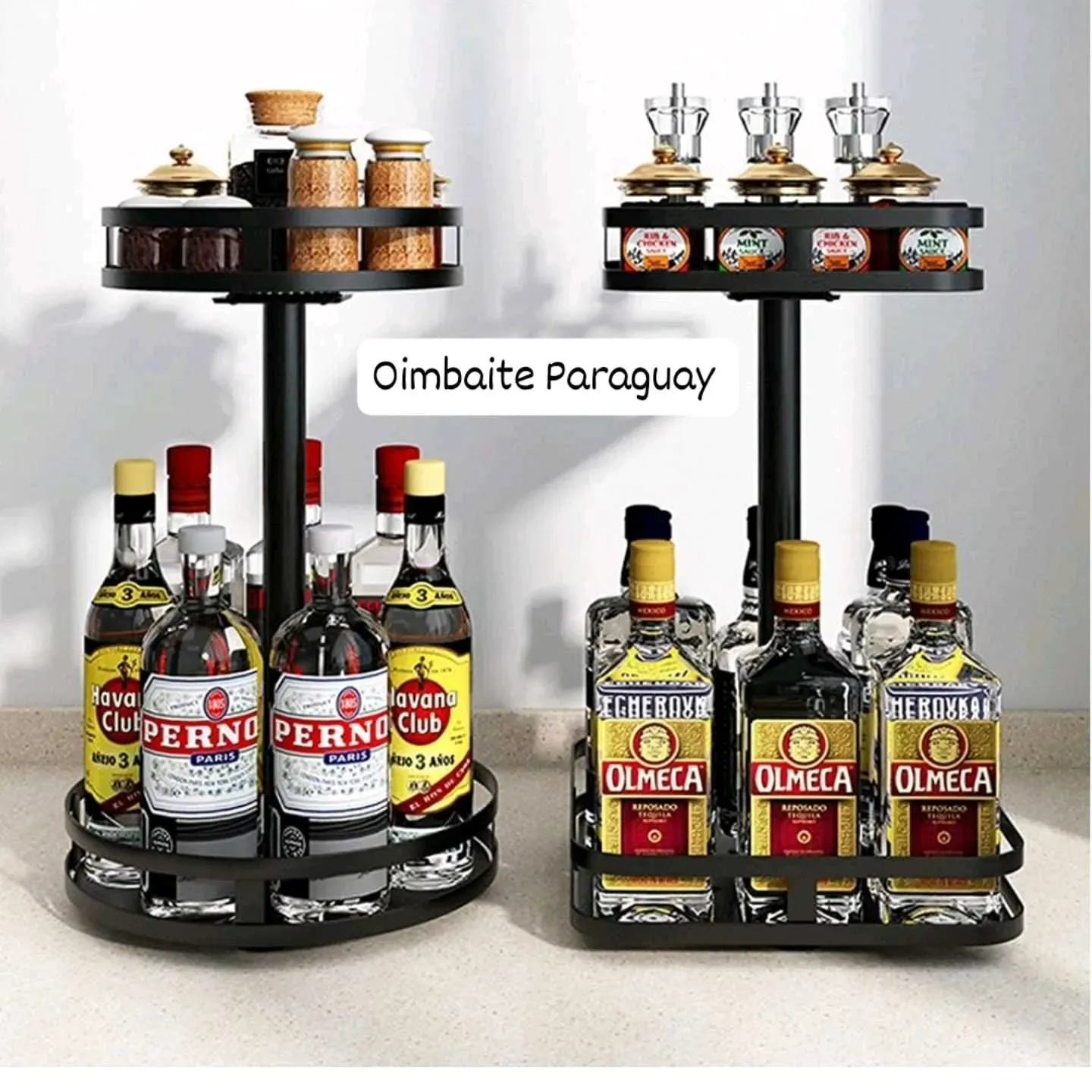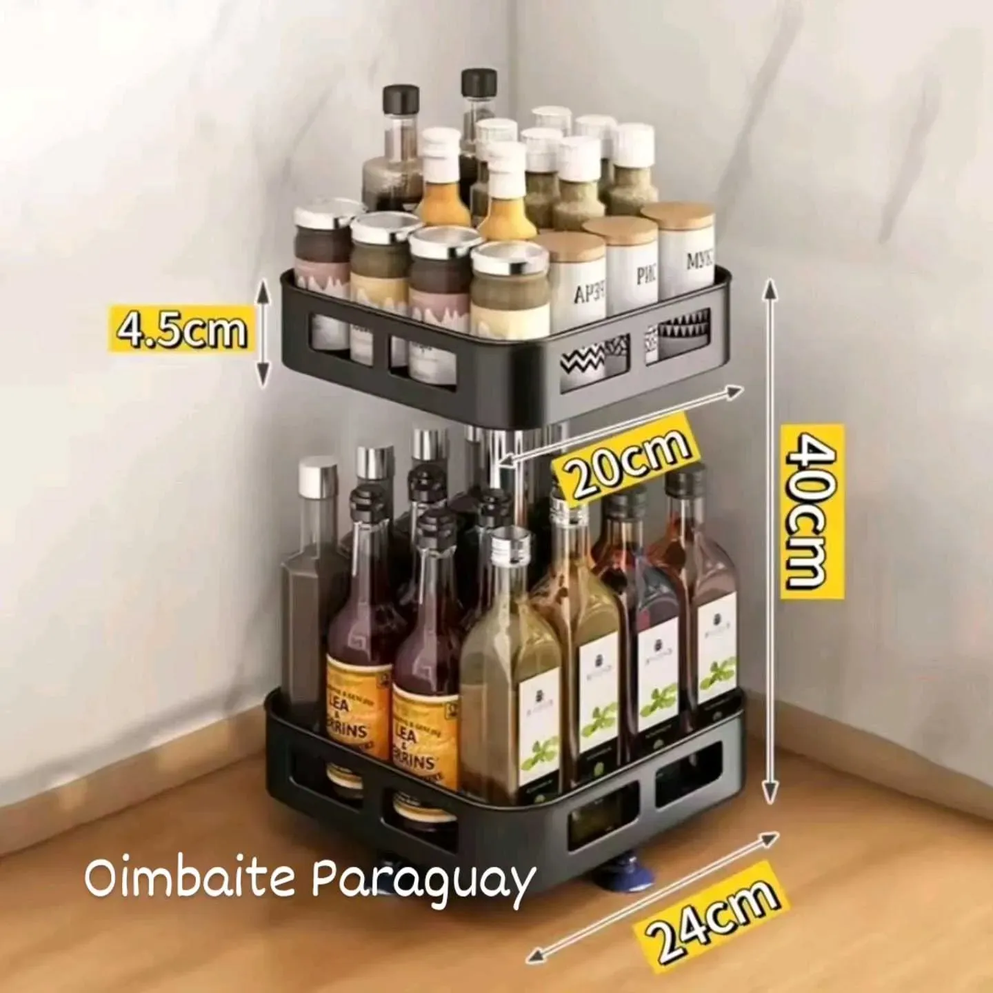 Organizador giratorio de metal, bandejas cuadradas de 2 niveles. Especial para especias o cosméticos.