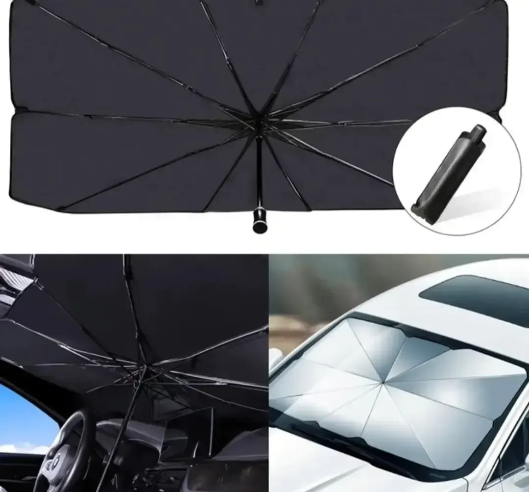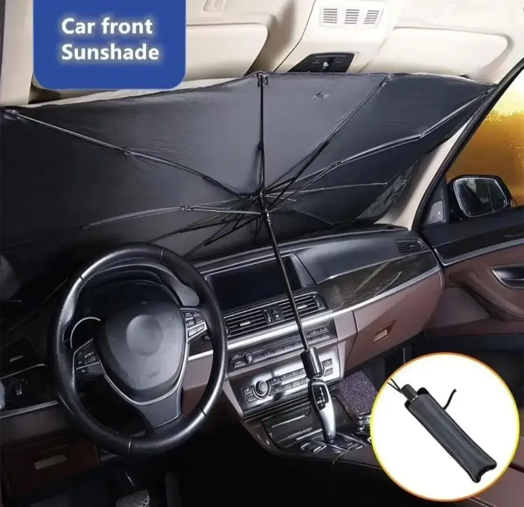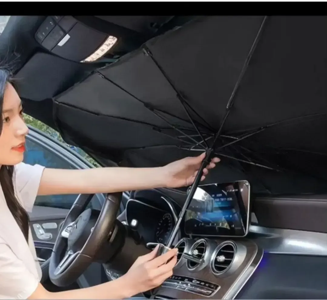 Parasol para auto en forma de sombrilla para una mejor protección solar.