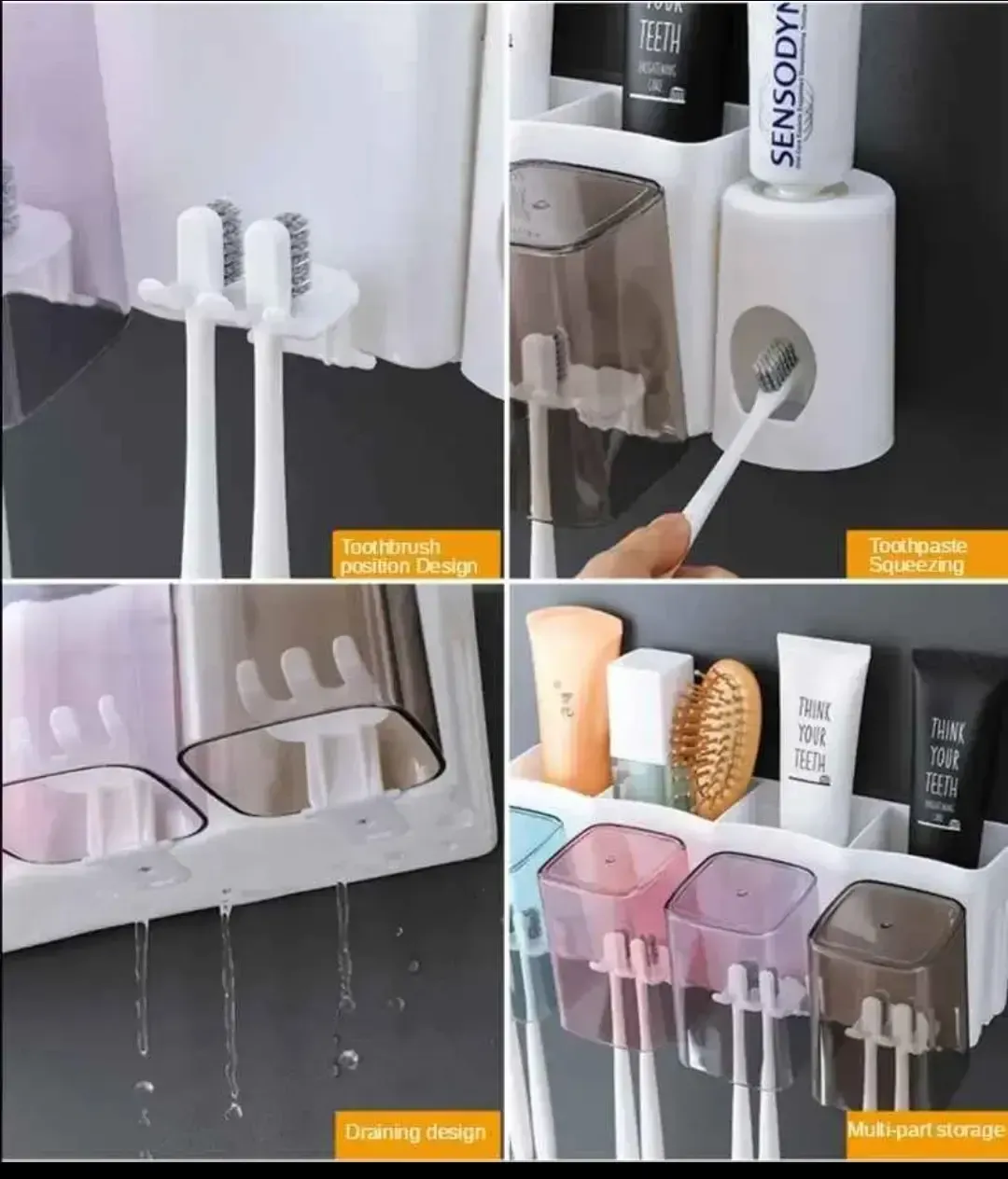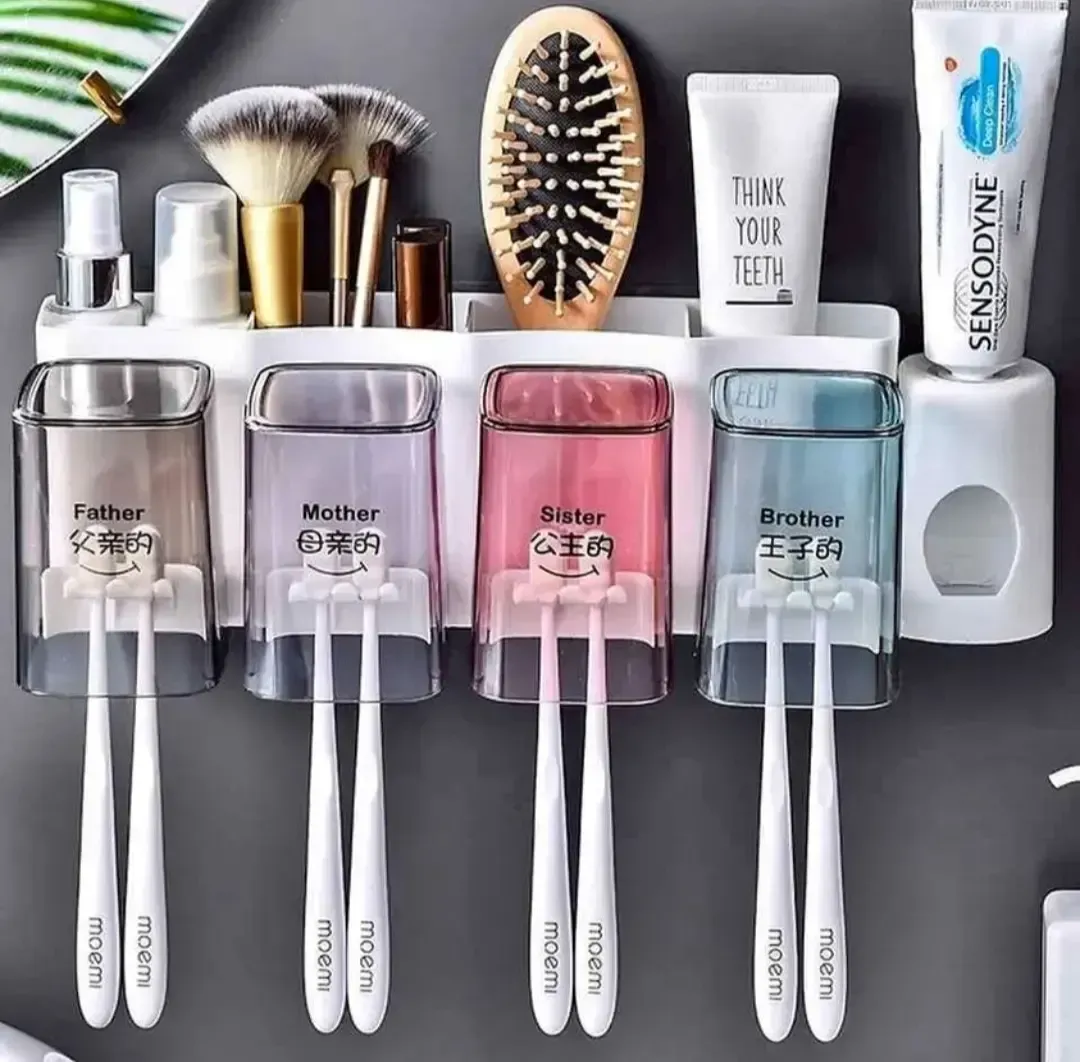 Porta para 8 cepillos de dientes, 4 vasos y dispenser de crema dental