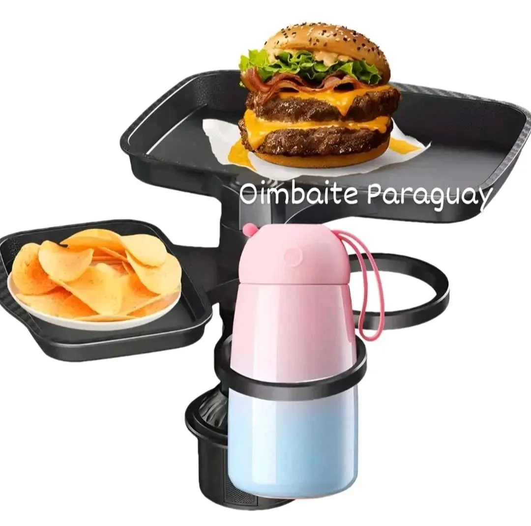 Cuenta con 2 espacios para vasos o hoppies y dos mini bandejas.