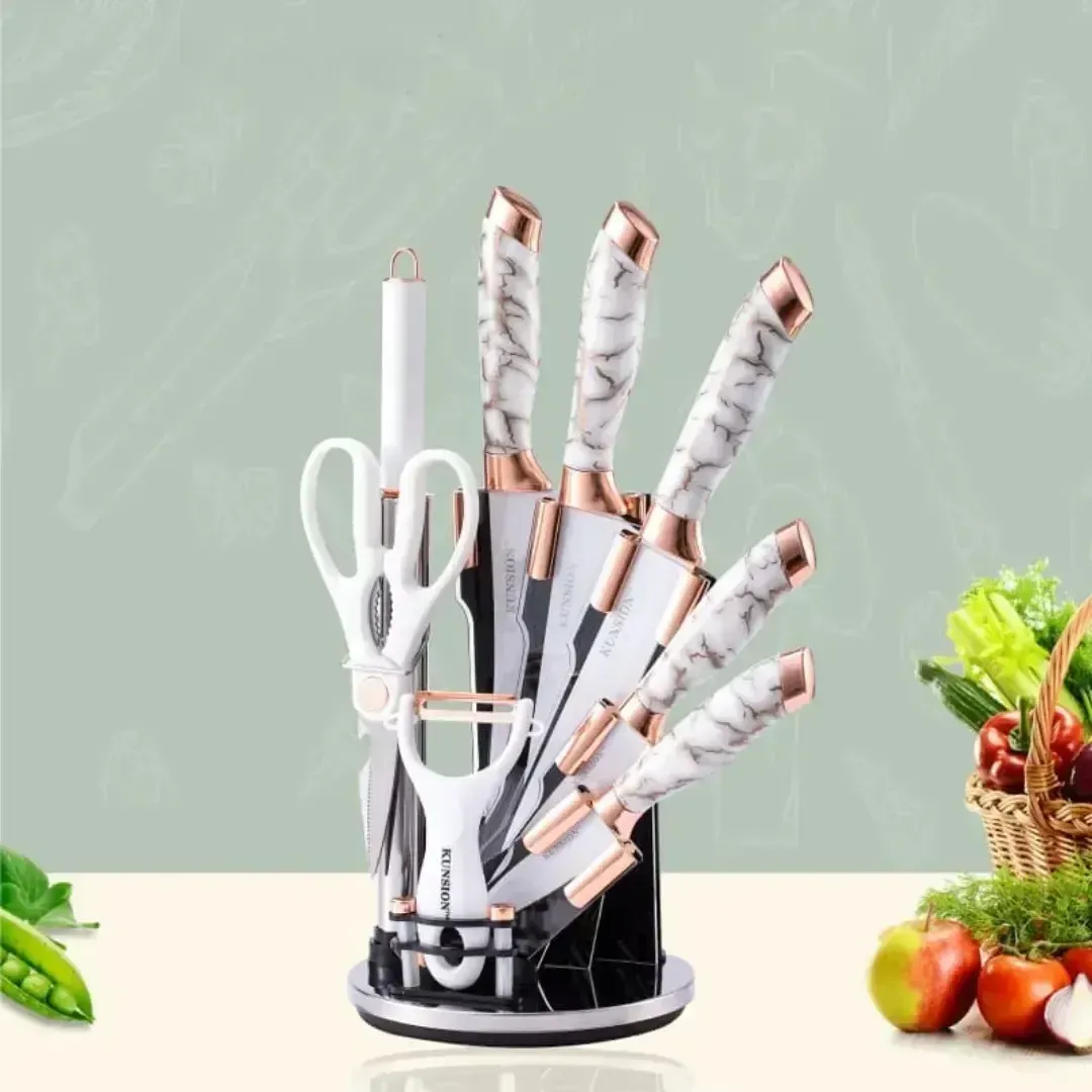 Set de cuchillos de 9 piezas, base giratoria