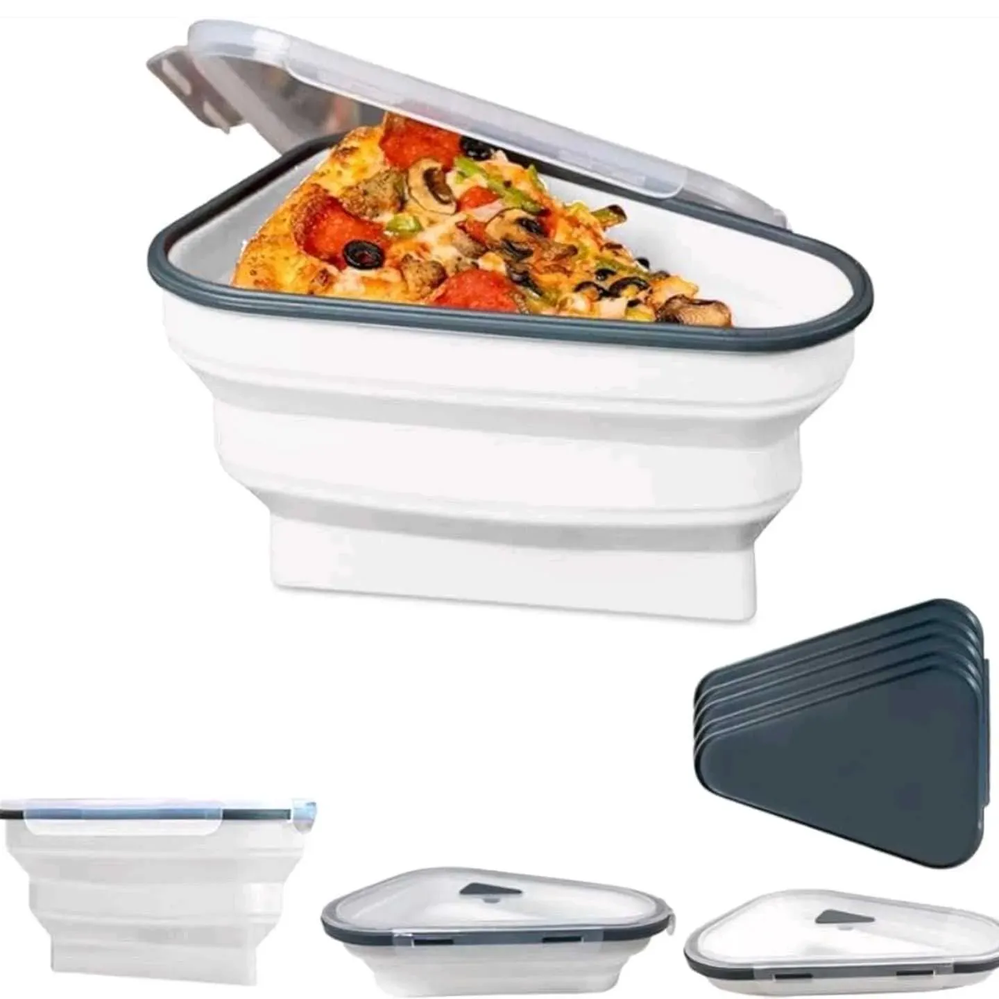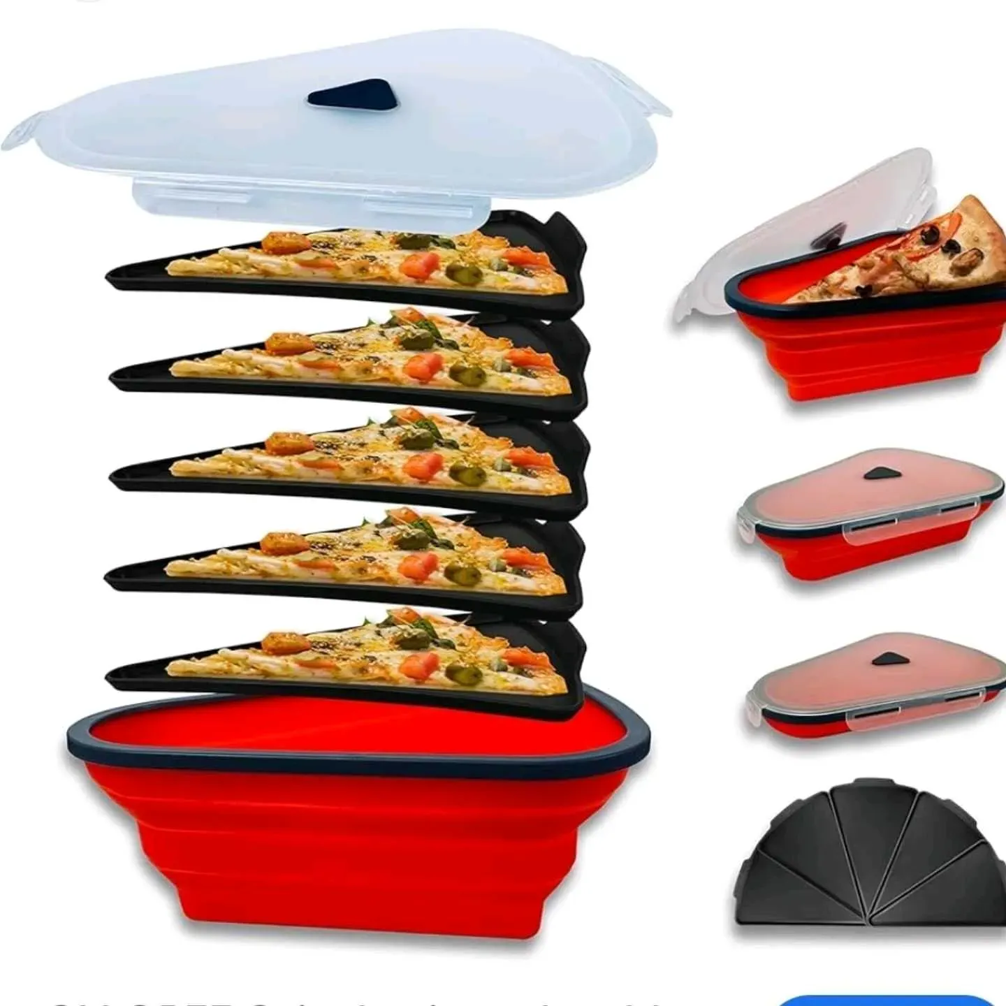 Contenedor reutilizable para pizzas con 5 bandejitas separadoras.