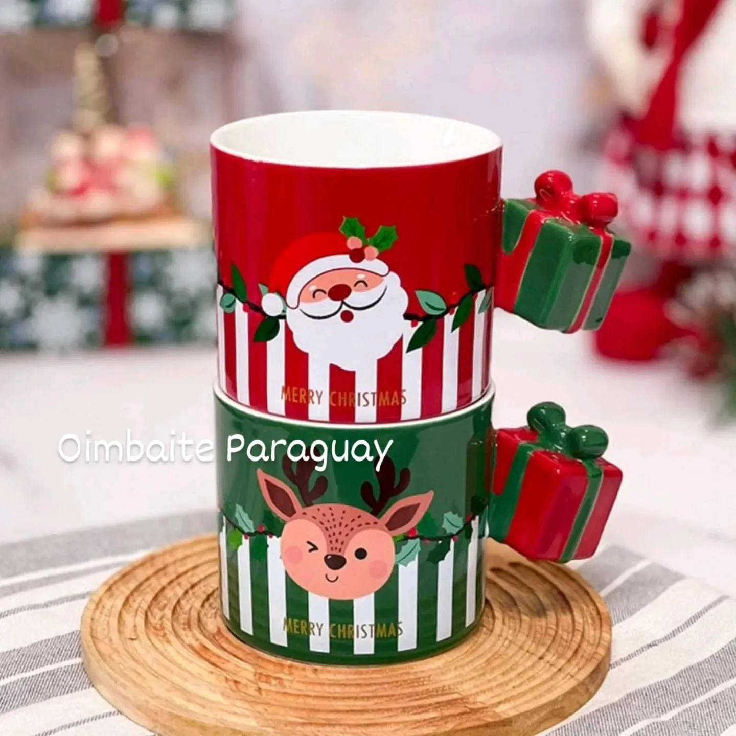 Taza de porcelana, diseño navideño, agarre original en forma de obsequio.