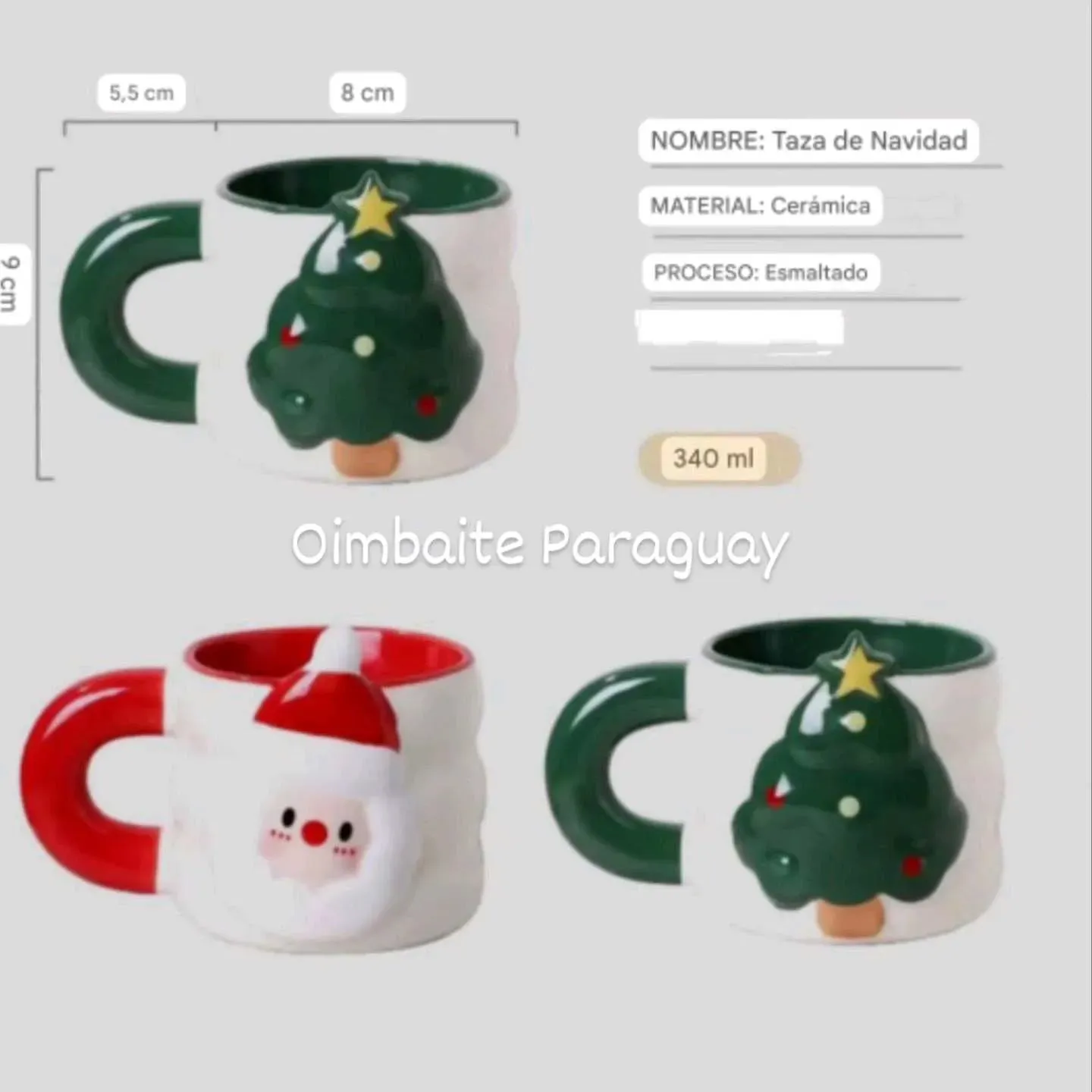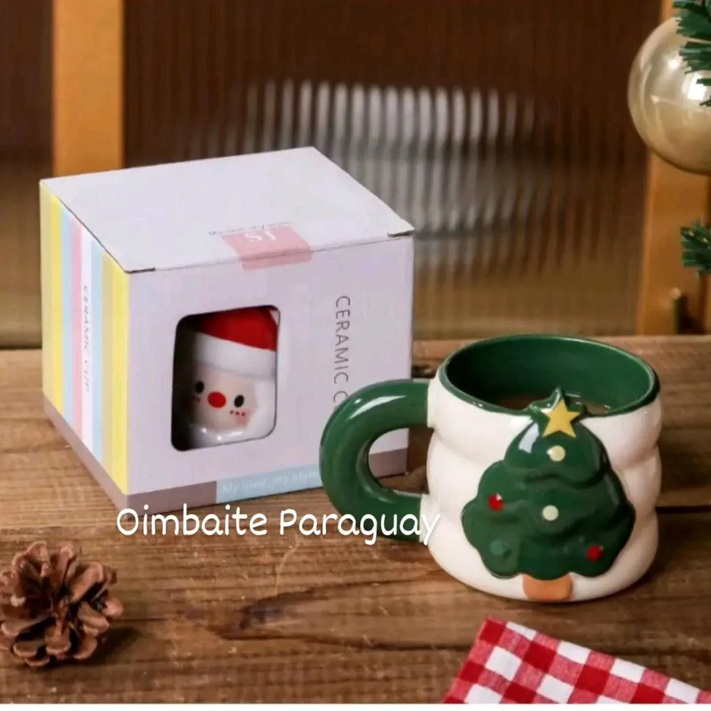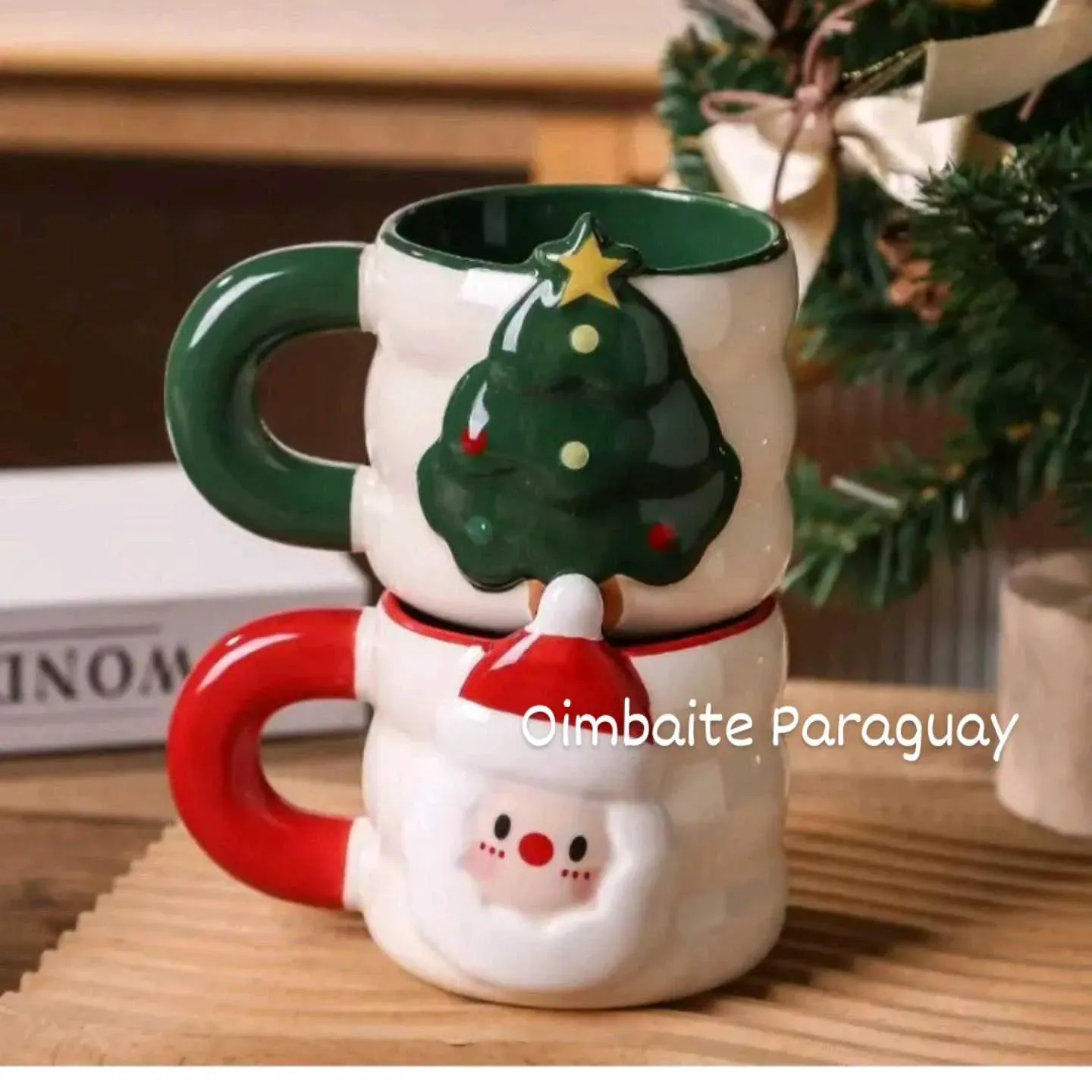 Taza de porcelana diseño papá Noel y árbol de navidad.