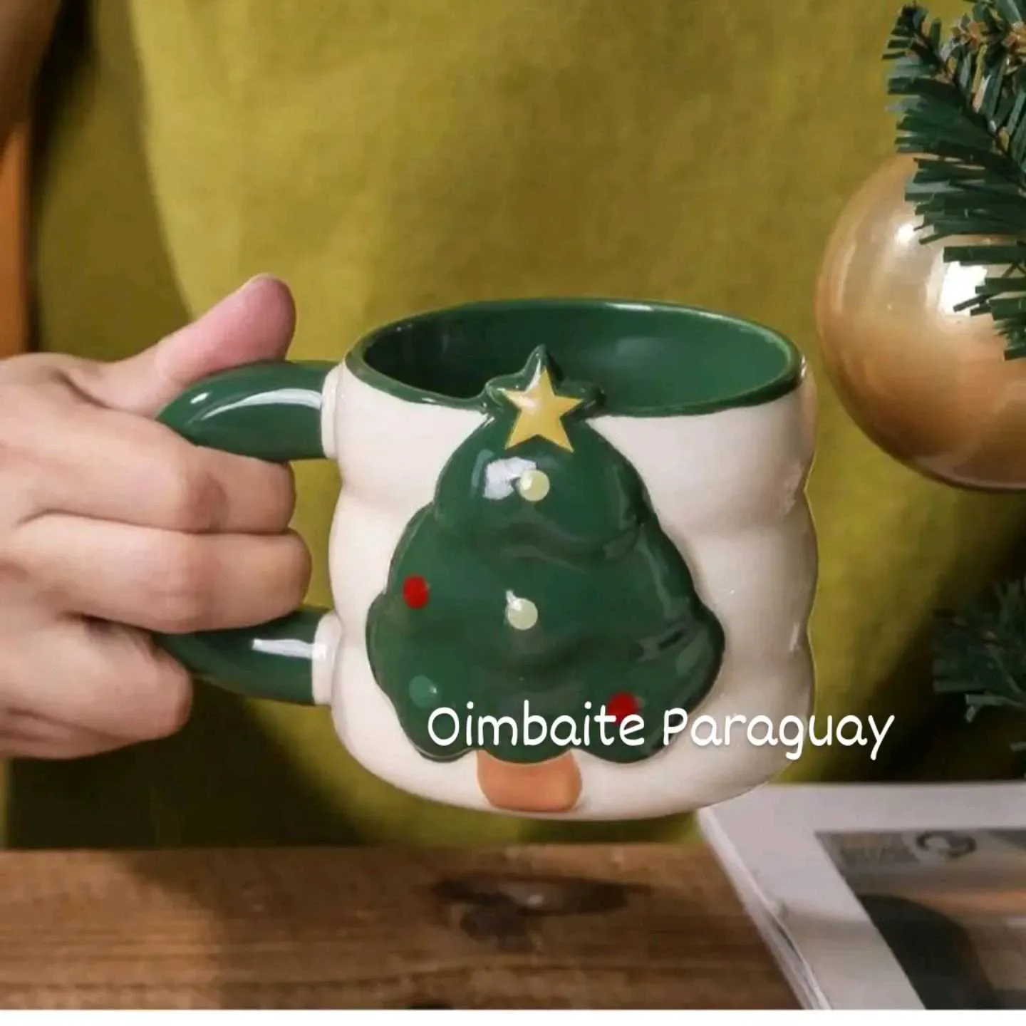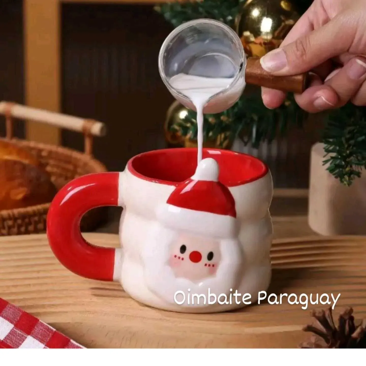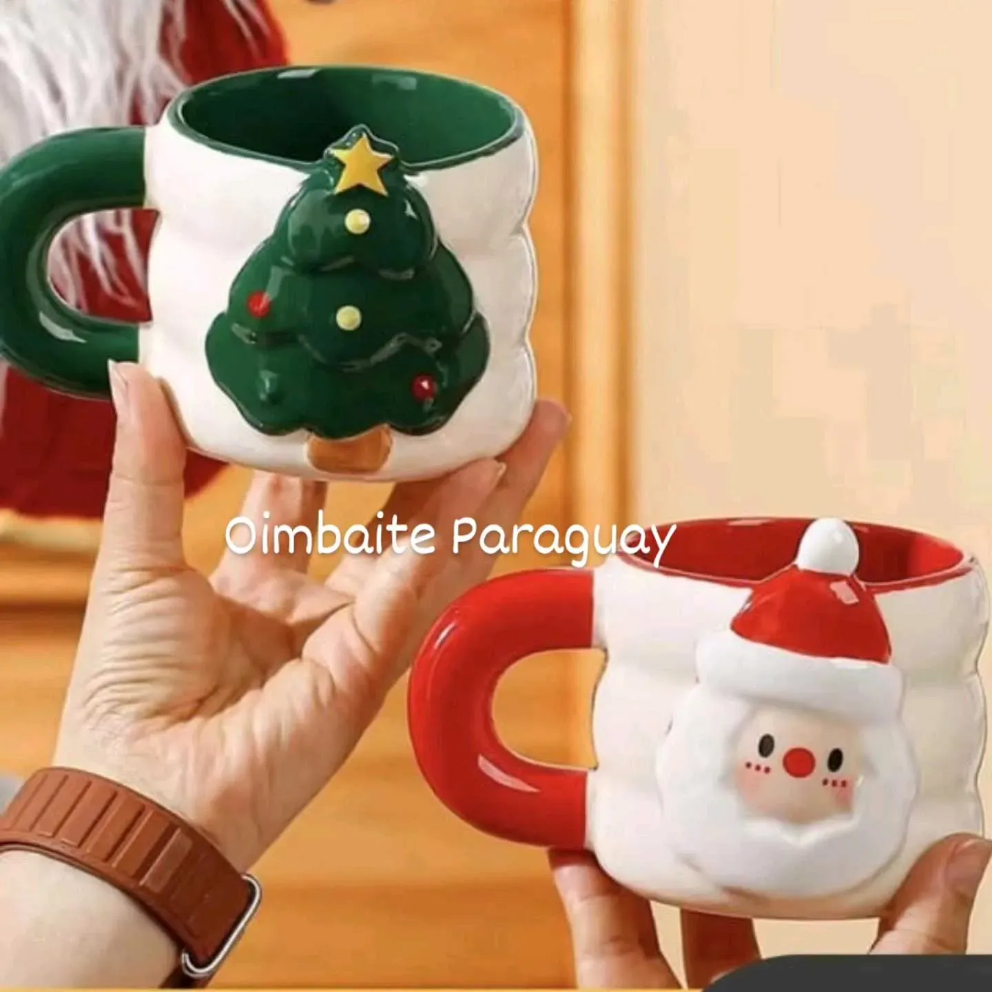 Taza de porcelana diseño papá Noel y árbol de navidad.