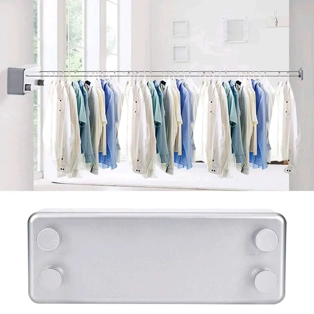 Tendedero retraíble para espacios pequeños, con cuerda de acero reforzado, cada cuerda mide hasta 4.20cm, total 8 metros 40cm. Se adapta al espacio.